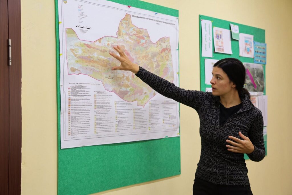 Судлаач Жастин Шанти Александер уулзалтын үеэр танилцуулга хийхдээ тусгай хамгаалалттай газруудыг холбох экологийн холбоос бүсийг бий болгож, Хүрмэн, Баяндалай, Номгон сумын нутагт байгаль хамгаалах нөхөрлөлийн 5 холбоог байгуулан ажиллаж байна.